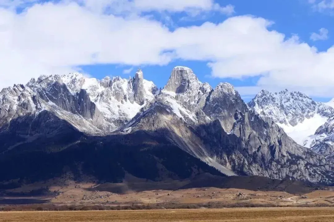 木雅圣地被贡嘎山等群峰环绕,春天时,雪山依然银装素裹,与逐渐复苏的大地形成鲜明对比。