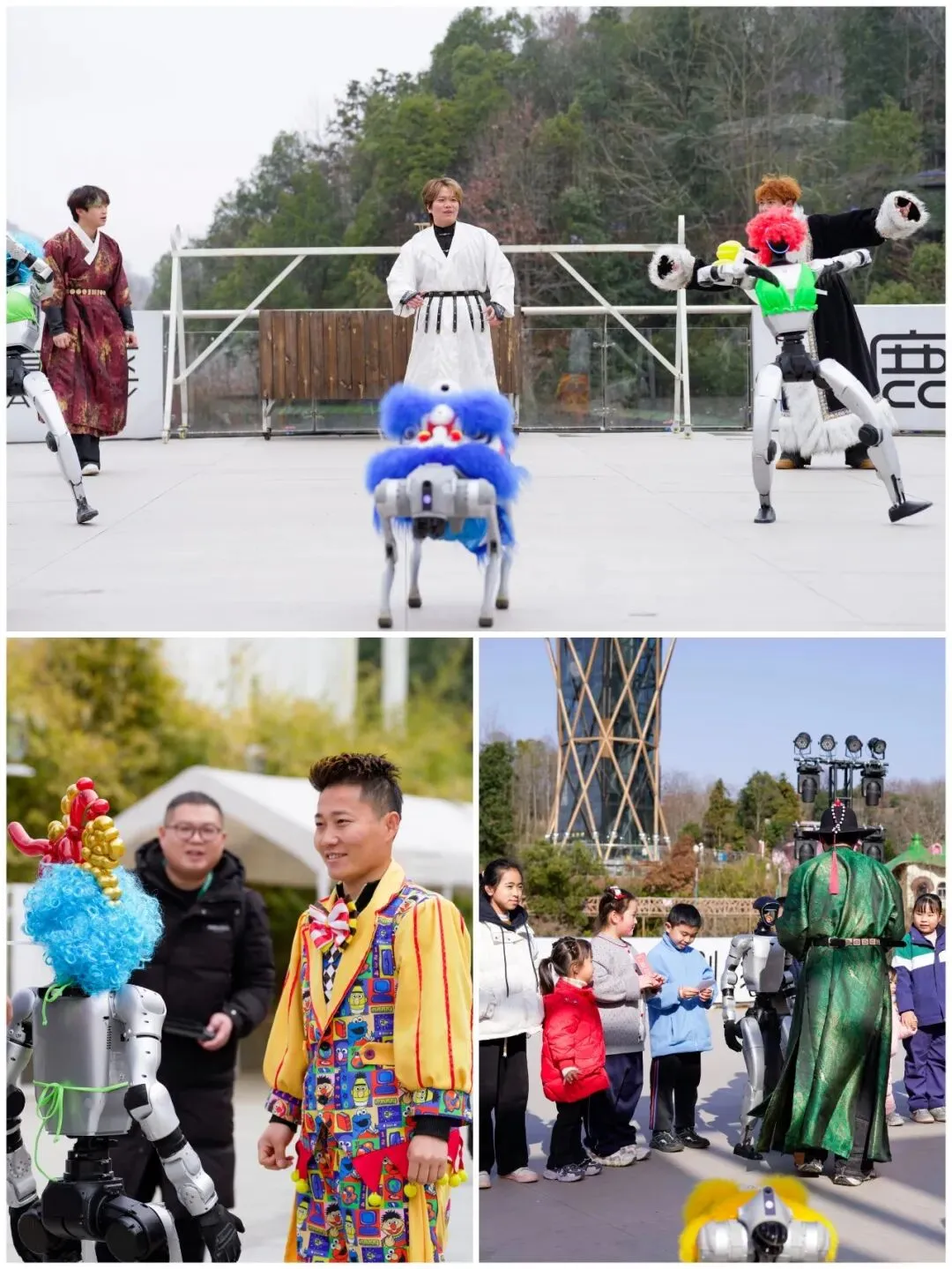 非遗打铁花、七彩烟花秀、高空小狮子搭配春晚同款机器人、机器狗,这些常见项目在鹿鸣谷交织碰撞,传统韵味与现代活力相融,被赋予了独有的生命力。