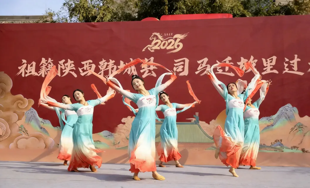 国家级非遗东少梁韩城行鼓震撼开场,鼓点铿锵、气势磅礴,擂响新春奋进的节奏;话剧《立木为信》以《史记》典故为蓝本,实景演绎诚信佳话,让历史文化“活”起来;柔美灵动的古典舞蹈与大气雅致的国风舞蹈轮番上演,于舞步之间尽显东方美学。