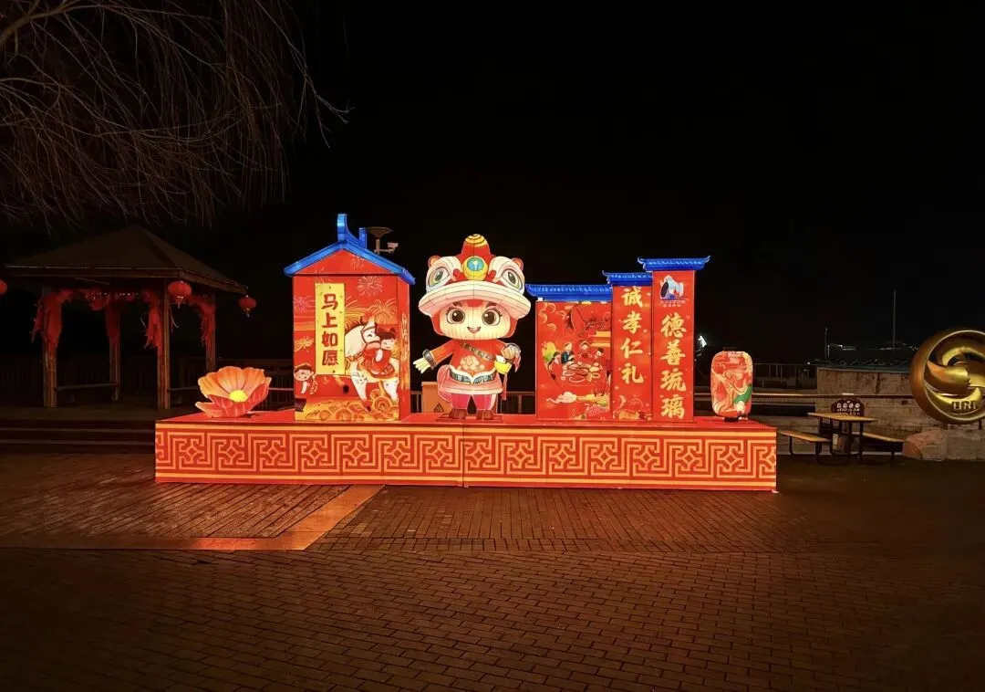 灯影摇曳映碧波,山光水色共婵娟——看,湖面倒映着万千灯盏,如繁星洒落,随波荡漾;听,微风拂过灯廊,仿佛灯影也在轻声诉说团圆的喜悦。各式花灯争奇斗艳,色彩斑斓,明暗交错,将雁栖湖的夜,装点得如梦似幻。