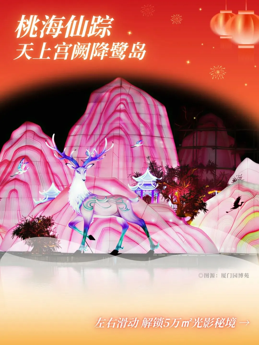 园博苑灯会也有福马哦!在华美的光影秘境中穿梭,打卡「福禄寿喜财」五重好运马,延续你的满满福气!