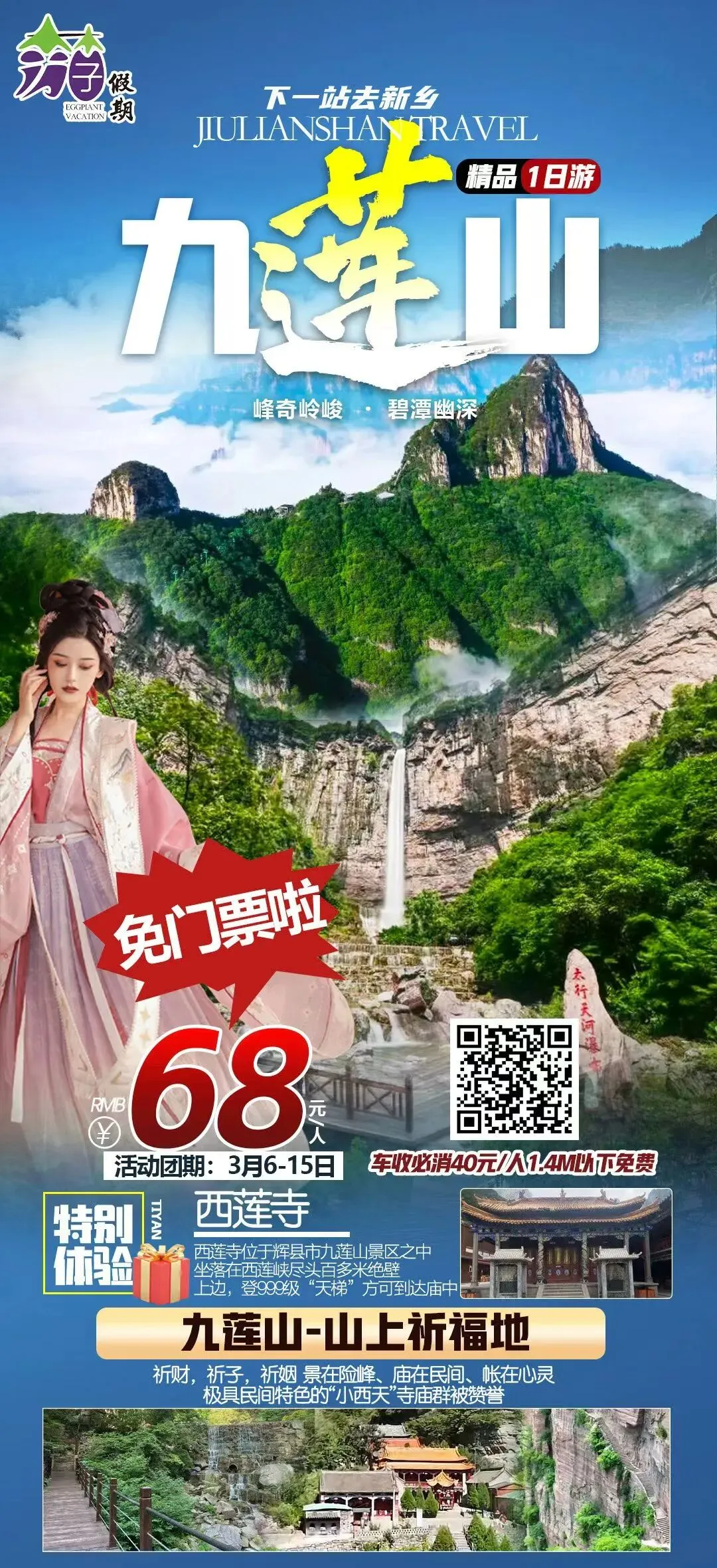 必消:八里沟天界山九莲山景区大交通40元,万仙山景区大交通50元,云台山景区大交通60元,上车给导游。1.4米以下儿童免费。