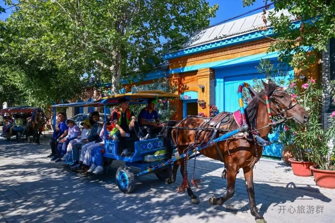 参观【喀赞其民俗旅游区】是国家 4A 级旅游景区,是北疆唯一一个大型原生态以反映维吾尔族风情为主的人文景区。位于伊宁市东南方向,面积约 22.9 平方公里,核心区 12.8 平方公里,是以维吾尔族为主,回族、哈萨克族、乌孜别克族等少数民族的聚居区,人口近 10 万。乘坐当地独有的交通工具(马的)也就是所谓得马车走进当地少数民族的家里,去品尝纯手工冰淇淋,去体验涂抹吾斯曼草,走进巴依大院去感受当地的少数民族文化,欣赏特色歌舞表演,最后可以跟着优美的旋律和舞蹈演员一起欢快跳舞。后赴伊宁站乘专列赴乌鲁木齐。