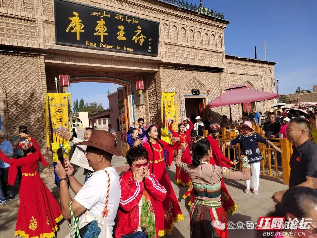 后参观国家4A级景区【库车王府】,库车王府是融维吾尔族建筑风格、中原建筑风格、俄罗斯建筑风格为一体。踏进库车王府,就能听见近 200 年历史的回声,缅怀到王公家族史的风范,体验到他们维护祖国统一,加强民族团结品德气节的主流;晚欣赏歌舞剧《杏花之约,丝路龟兹》,集库车龟兹舞蹈、佛教伎乐、民间舞蹈、民俗风情、非遗文化、诗词于一身,演出振奋人心、惊艳绝伦前无古人后无来者。“龟兹乐舞一声鼓,杏花之约千年舞”。美轮美奂的舞台设计和布置,相得益彰的电声光影融合交织,独具特色的西域民俗风情,让观众们沉浸其中。晚乘专列赴喀什。