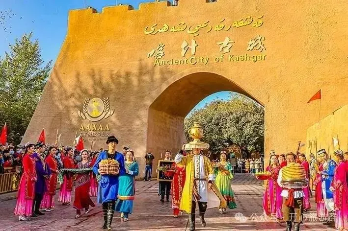 6、民俗盛宴:特别安排喀什开城歌舞欢迎仪式,赠送团队集体照、旅行期间过生日赠送长寿面!