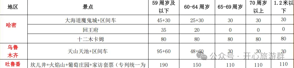 由于景区门票政策,各年龄段门票差异较大,门票均不包含,为了保证各位游客均能享受到相应的优惠政策,现将景区门票列出,请各位根据有效身份证年龄(精确到年月日)出团后交给导游。