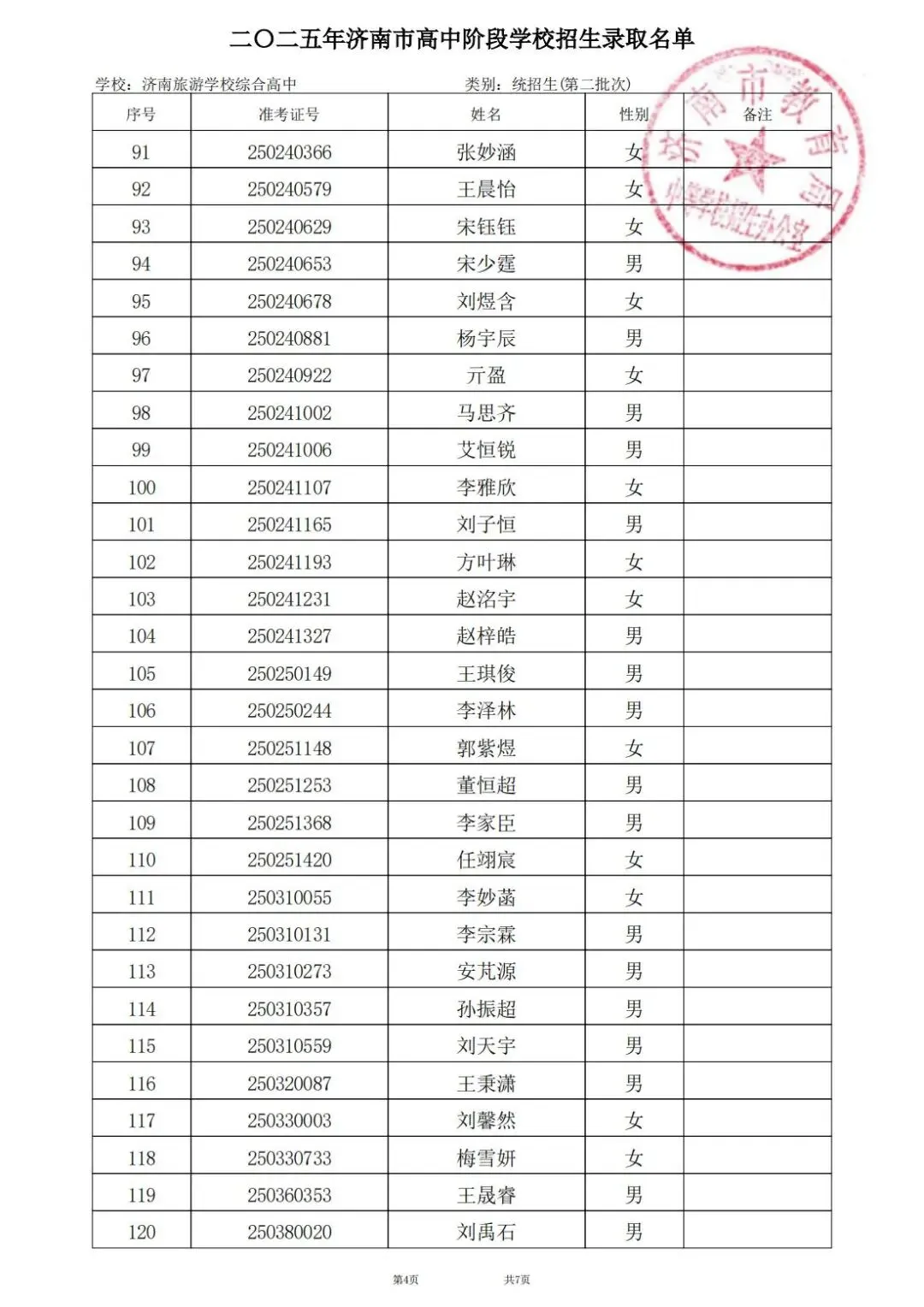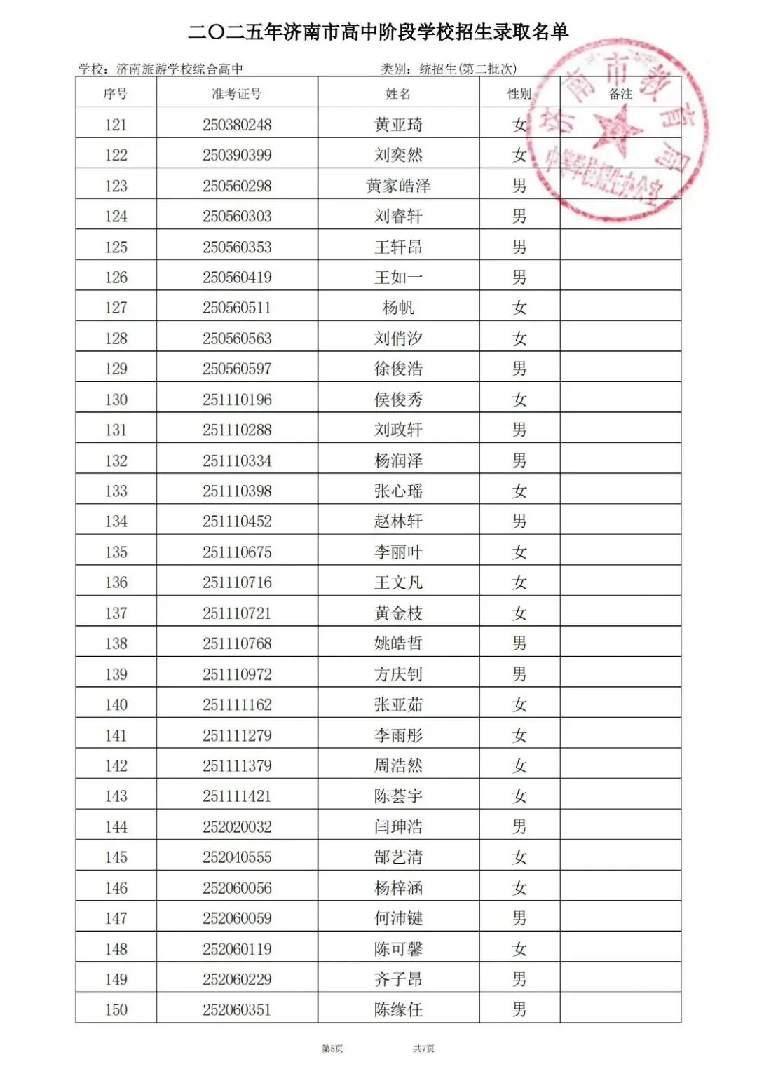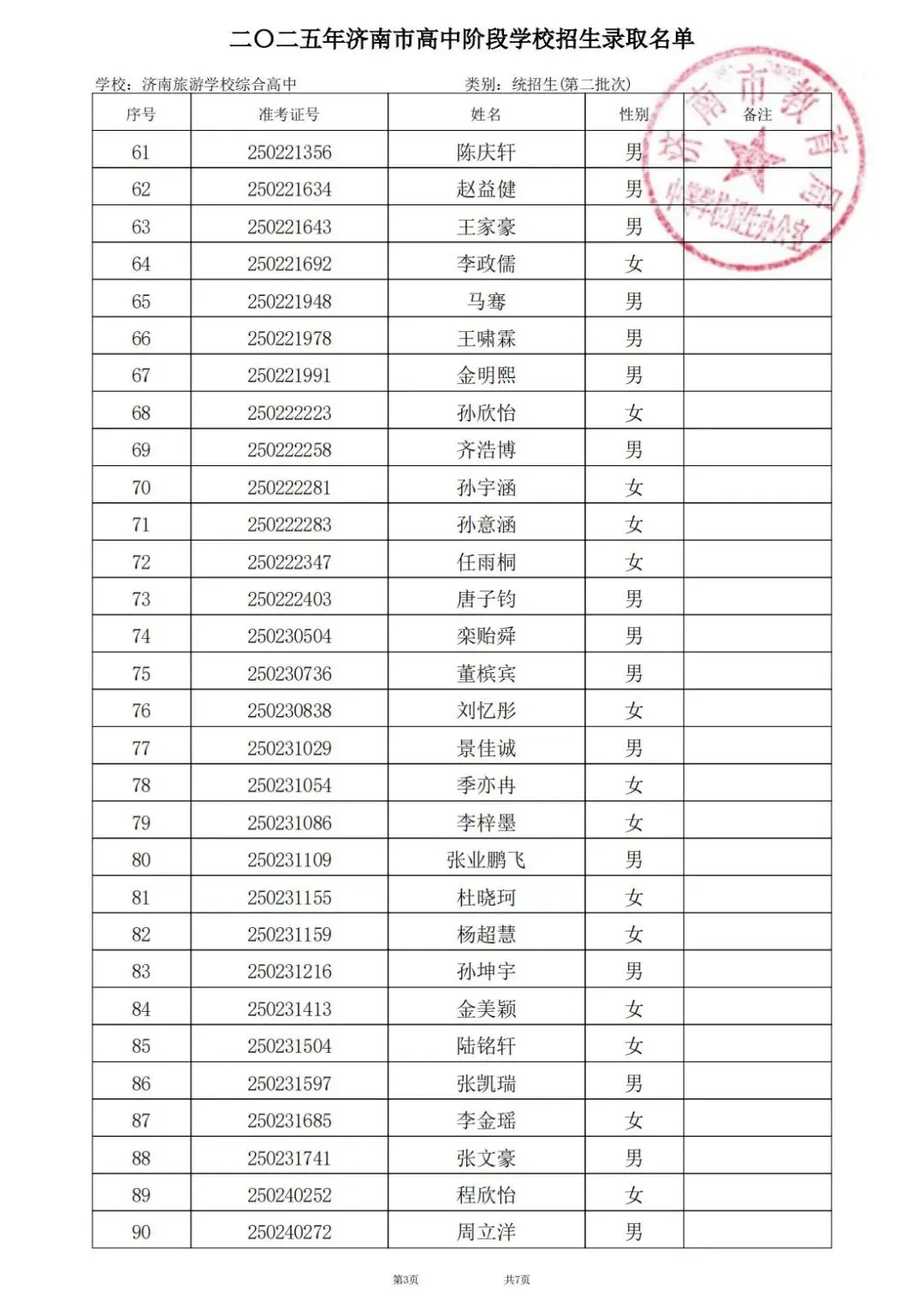 济南旅游学校2025年高中统招生(含艺体特长生)录取名单