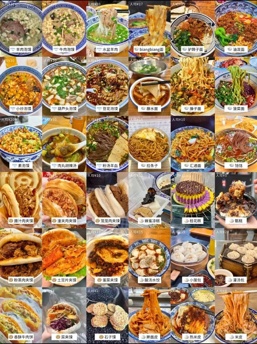 ✅必吃美食:肉夹馍、羊肉泡馍、biangbiang面、甑糕、油泼面