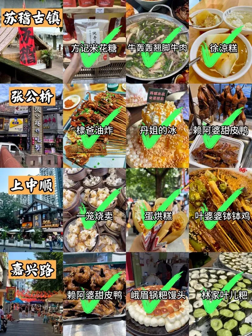 ✅ 必吃美食:火锅、钵钵鸡、钟水饺、三大炮、冰粉、蛋烘糕