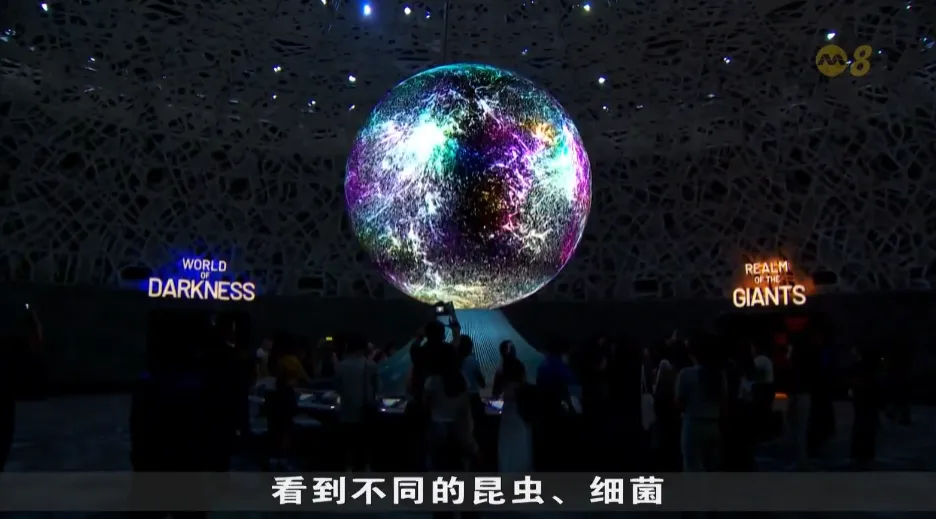 “显微奇观”(Micro Worlds)则通过互动玻璃球与投影穹顶,放大展示浮游生物、昆虫群落、真菌及细菌等肉眼难以察觉的生态系统。