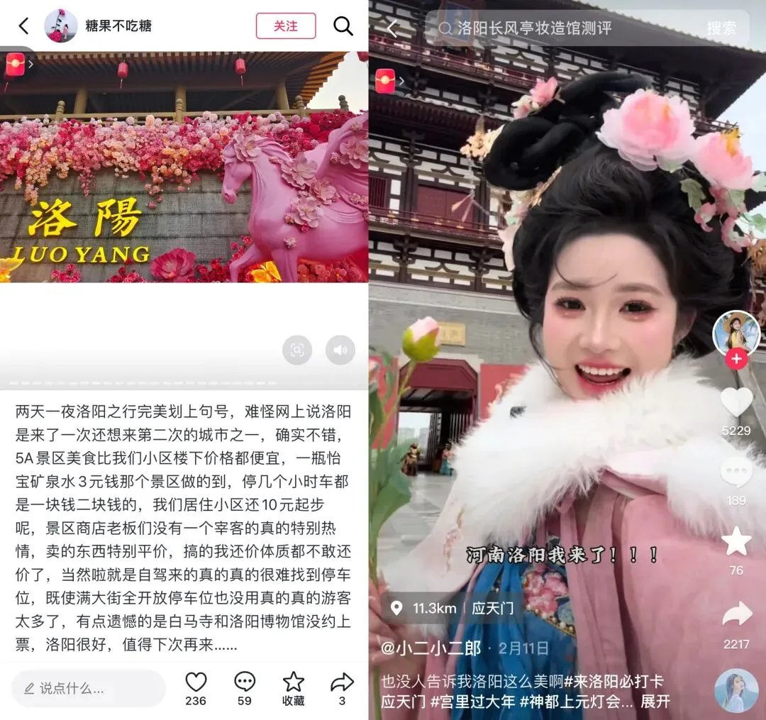 从高铁站“冰心玉壶待君来”的文化迎宾,到全场景的文化浸润,洛阳把文化基因融入新春的每一处细节。这份诚意,换来了游客的自发口碑,各大社交平台上,洛阳的“自来水”好评不断,“洛阳很好,下次还来”成为无数游客的共同心声。