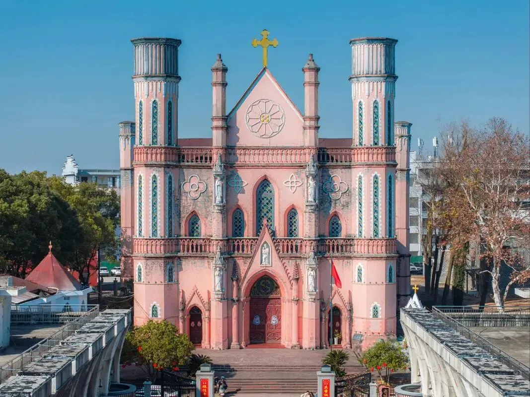 介绍:全国第三大天主教堂,百年哥特式粉色建筑,拍照出片。