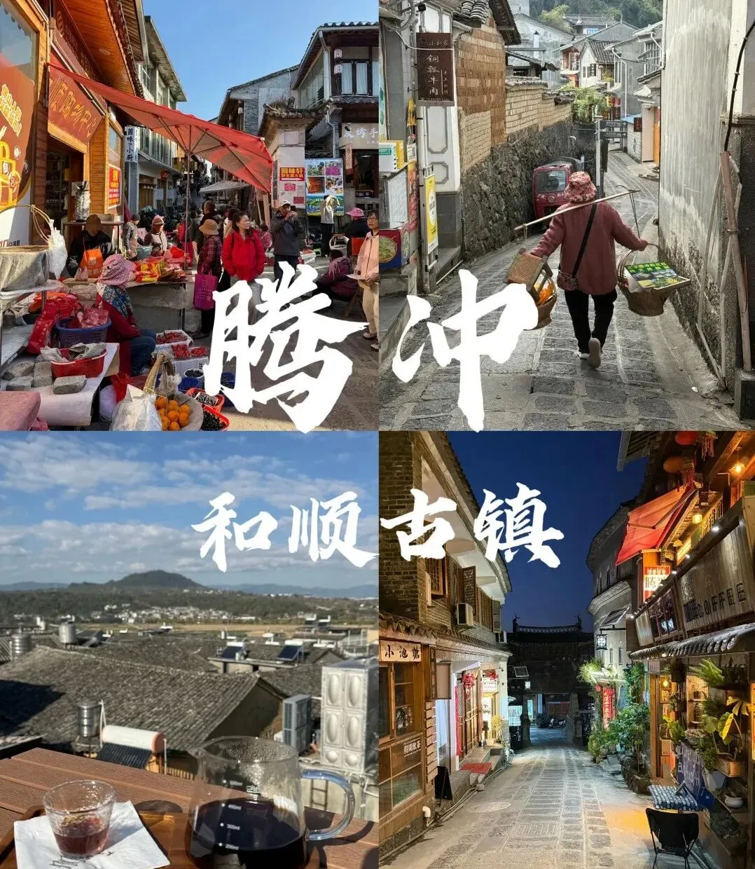 Day 3:古镇深度 / 延伸体验 精华版:和顺早市感受市井气,探元龙阁,洗衣亭小憩,沉浸式体验古镇烟火。 延伸版:南方丝绸古道(永定桥段)、云峰山(道教名山,需大半天)、银杏村(11 月中 - 12 月初,金黄银杏)。 傍晚:尝土锅子、大救驾,体验田野地热温泉。
