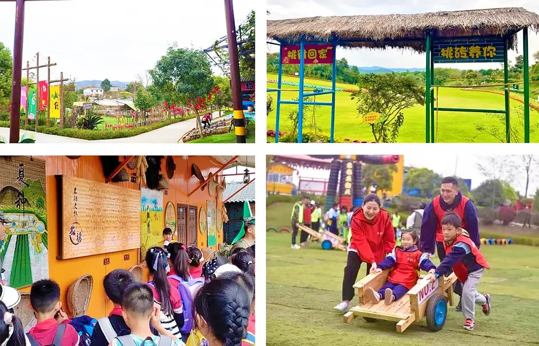 考察要点:乡村+农耕文化+无动力设施+亲子游+研学亮点推荐:农场乐翻天,200亩农场,累计滚动投资2000多万元,年接待15万人,把“无动力农场+研学”做到极致,又土又好玩!是成都地区相对较早的无动力设施农业体验园,也是从2016年营业至今的老牌亲子农场,金堂县首批23个中小学生研学实践教育基地之一。