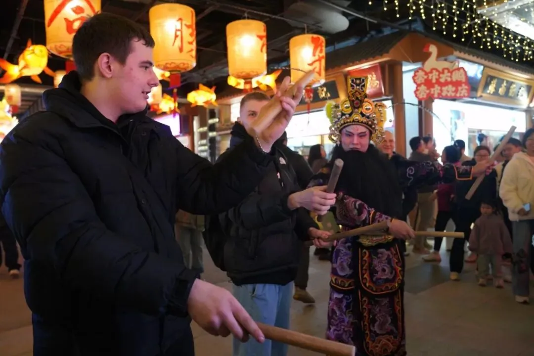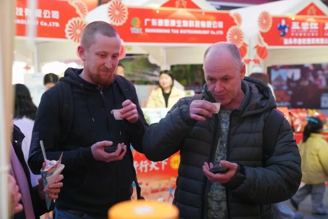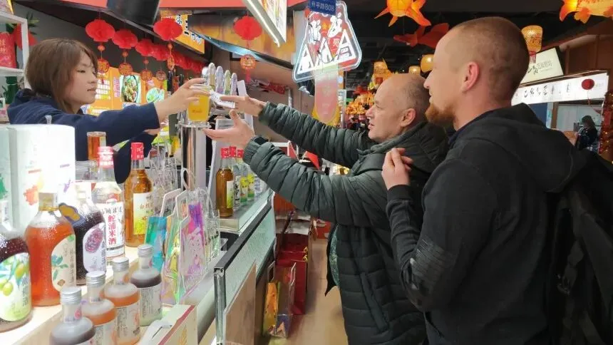 桑浦山米酒和鮀浦米酒甄选优质糯米酿制而成,酒香与米香层层交融,口感温润醇厚又层次丰富。举杯浅酌间,一位俄罗斯船员不禁竖起大拇指,眼中满是暖意:“这味道让我想起了家乡的伏特加酒,在异国他乡的新春时节喝到,太亲切了!”得益于便捷的出入境政策和中国社会的安全稳定,船员们得以在年味浓郁的潮汕街巷安心畅游、毫无顾虑地放开味蕾品尝特色美食、选购心仪礼品,临走时还特意带上几瓶橄榄酒,将“潮汕味道”带回船上,与同伴分享这份跨越国界的温暖,让这份潮味在远洋航行中传播延续。