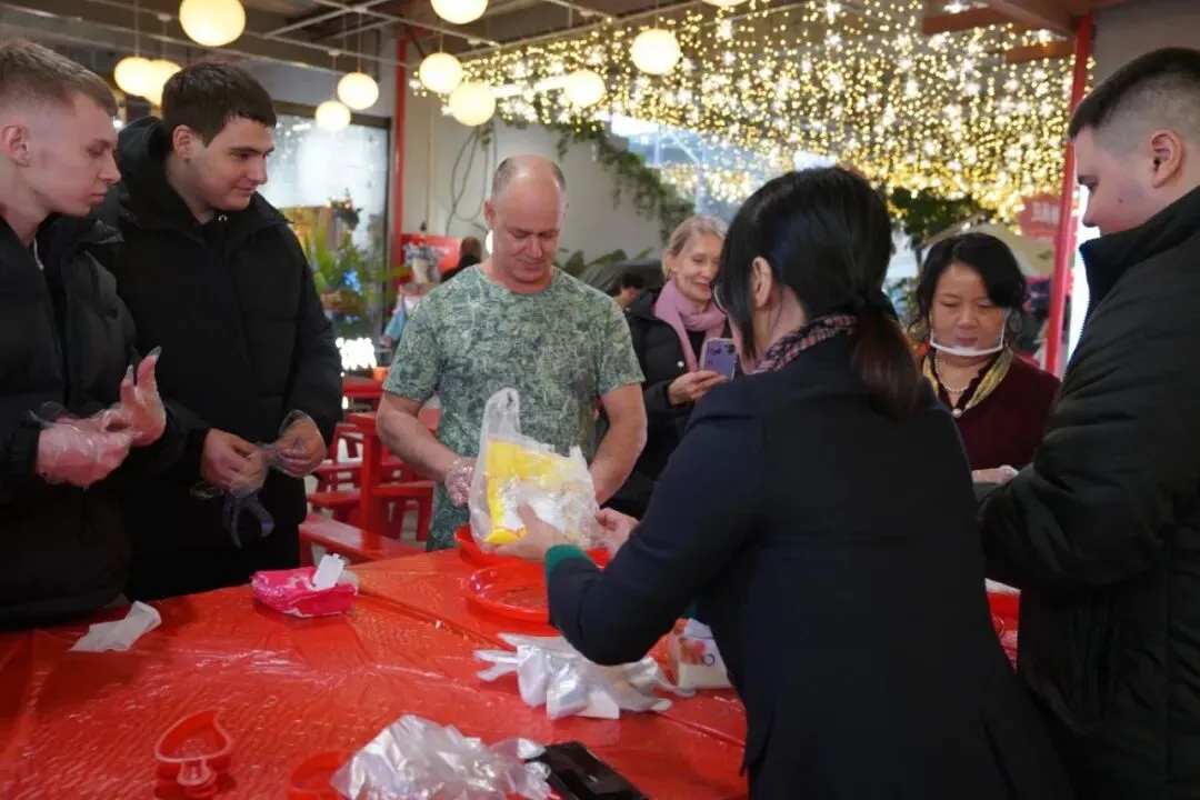 在移民管理警察与汕头国际海员俱乐部的合作联动下,船员们开启了深度文化之旅。走进文化集市,跟着师傅学习红桃粿制作:揉匀软糯的粿皮,填入鲜香馅料,用传统模具压出精致花纹,将潮汕人对团圆的期许藏进方寸粿品中;换上色彩艳丽的舞龙服饰,在锣鼓声中挥动摇杆,龙身游走飞动,盘旋翻滚;跟随英歌舞传承人,学习刚劲有力的舞步与敲鼓节奏,融武术之英姿,合戏曲之神韵,亲身演绎“中华战舞”的磅礴气势,船员兴奋地分享自己的感受:“这种亲身参与的文化体验,比单纯观赏更有意义!”