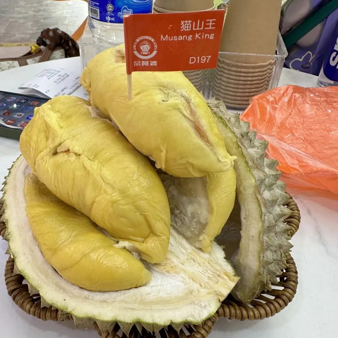 克拉码头那边的榴莲店。马来西亚榴莲,猫山王,黑刺。店员很耐心地给我们解释不同榴莲的区别,但我们吃不惯,太苦了。店员还说越苦越好,理解不来。