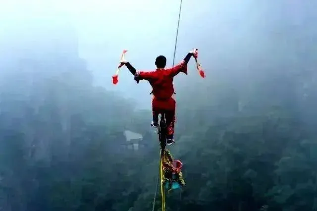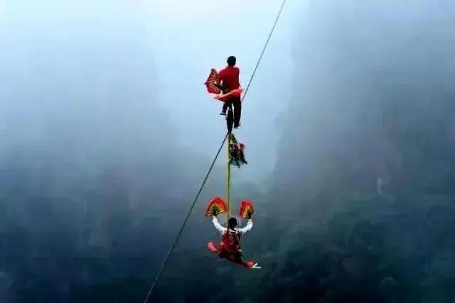 北帝山高空走钢丝表演