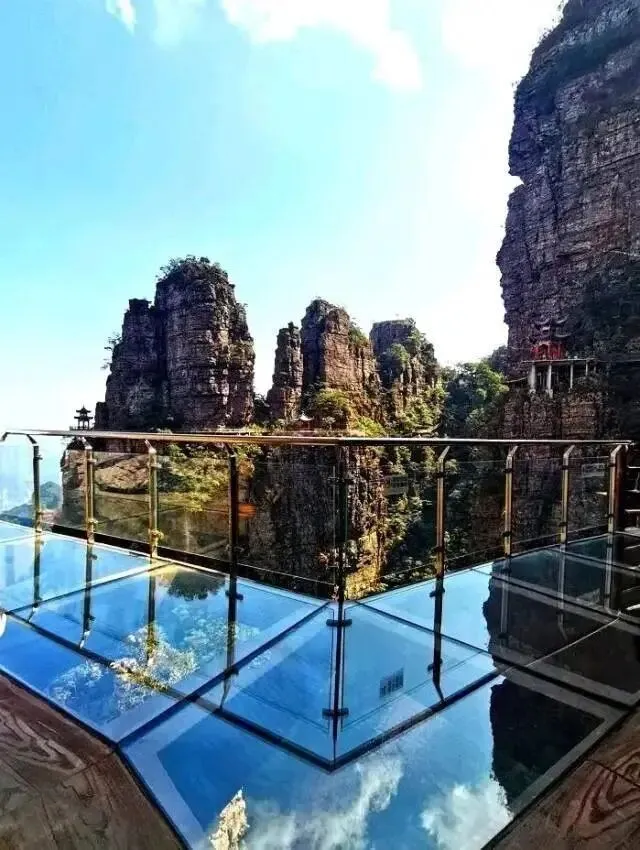 走在玻璃栈道上,低头能看到脚下的山景