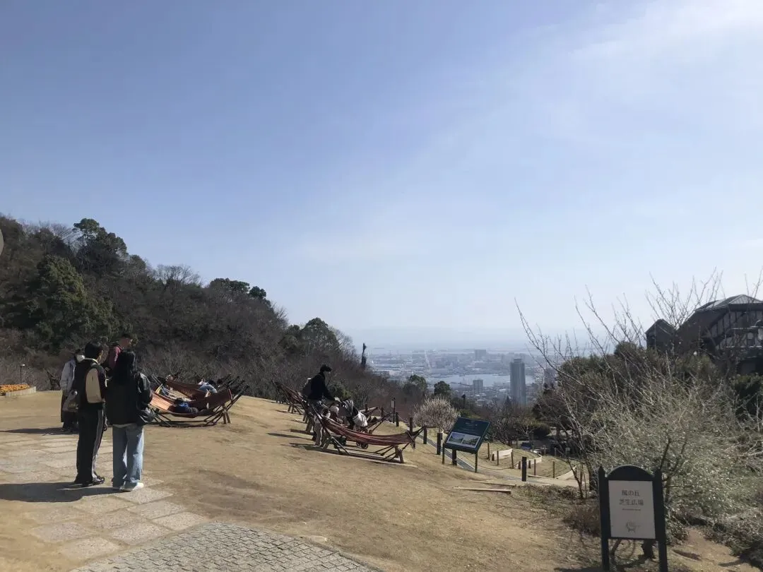 上到香草园,可以在草坪上的吊床上躺一下,晒晒太阳,眺望一下神户港,小憩一会儿,再往上走