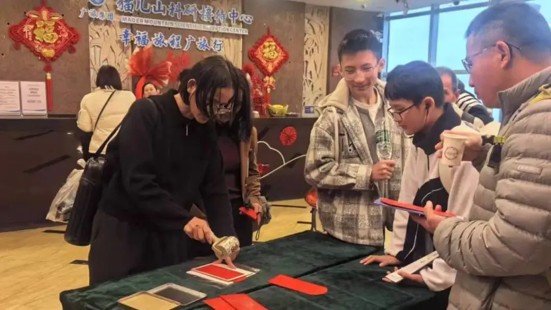 年俗活动精彩上演,年味更浓厚。为深入推动文化和旅游深度融合发展,全力打造文化底蕴深厚的高品质旅游景区,今年春节,猫儿山景区以“猫儿山里过大年,山海团圆暖新春”为主题,精心策划并推出了一系列特色鲜明、趣味十足的新春民俗活动。迎福写春联、诗词飞花令、新年好运抽签、新春灯笼DIY、趣味猜灯谜、石膏彩绘,以及非遗拓印、植物拓染、窗花剪纸、竹竿舞、瑶族歌舞表演等沉浸式体验项目轮番上演,让游客在饱览祖国大好河山壮阔之美的同时,沉浸式感受中华优秀传统文化的独特魅力,浓浓的年味始终萦绕在山林之间。