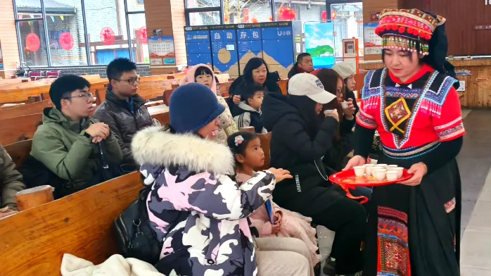 暖心服务诚意满满,宠客更到位。近年来,猫儿山景区始终以提升游客满意度与舒适度为核心,持续深化文旅志愿服务。春节假期期间,景区管理部门全员在岗、全线待命;综治、交通、安保、票房、换乘、营销等各岗位工作人员均提前到岗,全力做好游客接待、秩序维护、交通疏导等各项保障工作,确保能快速响应游客的各类诉求。同时,景区还抽调青年文艺骨干组建志愿服务队,在游客候乘区域通过歌舞表演、趣味互动等形式,有效缓解游客排队等候的焦躁情绪。针对雨雪天气,景区酒店、游客中心等场所免费为游客提供热饮姜茶、暖心点心、应急药品等物资,从全方位、多角度满足游客的个性化需求,让整个旅途充满了温度与关怀。