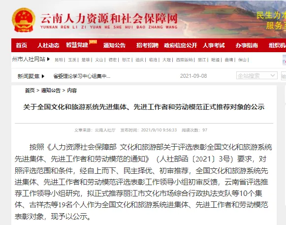 正在公示!思茅区1人拟入选全国文化和旅游系统劳动模范!