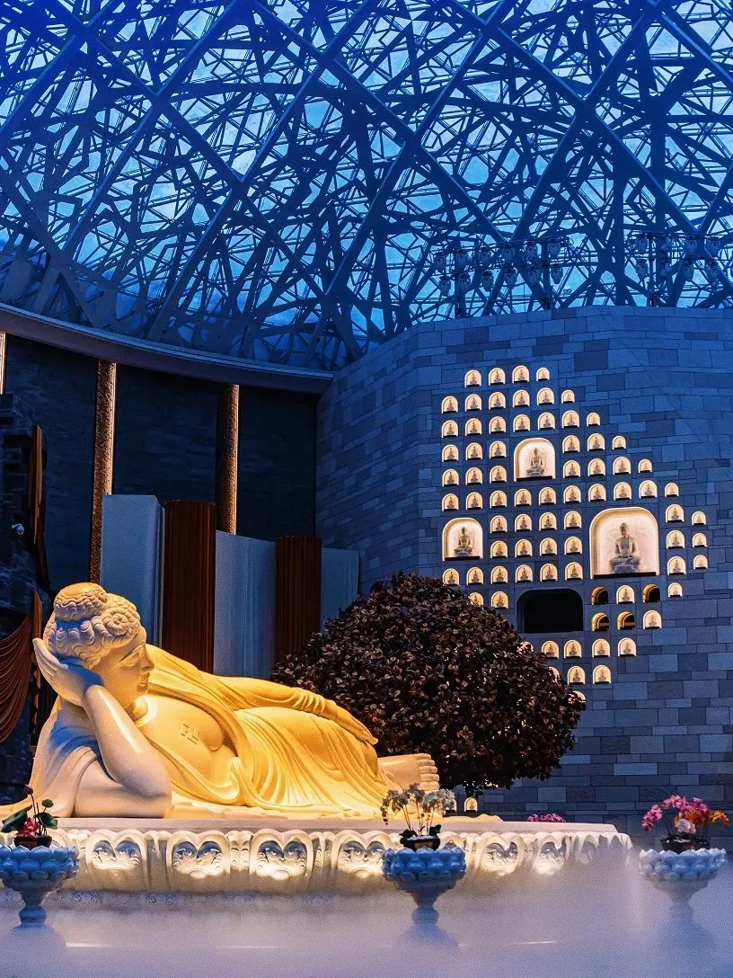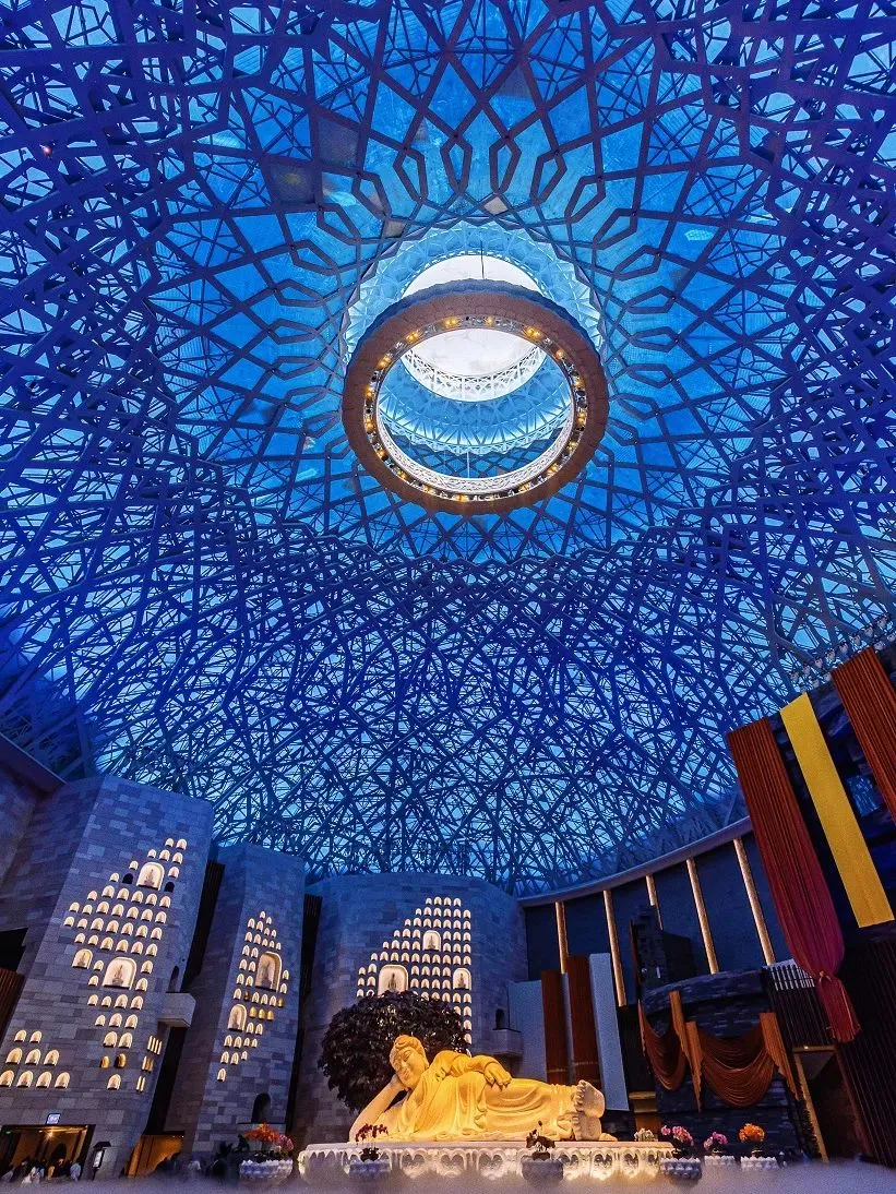 佛顶宫:作为佛顶圣境区的核心之一,佛顶宫坐落于牛首山西峰之处,建基于历史遗留矿坑之上,总建筑面积约13.6万平方米,由地上三层的禅境大观和地下六层的地宫构成。