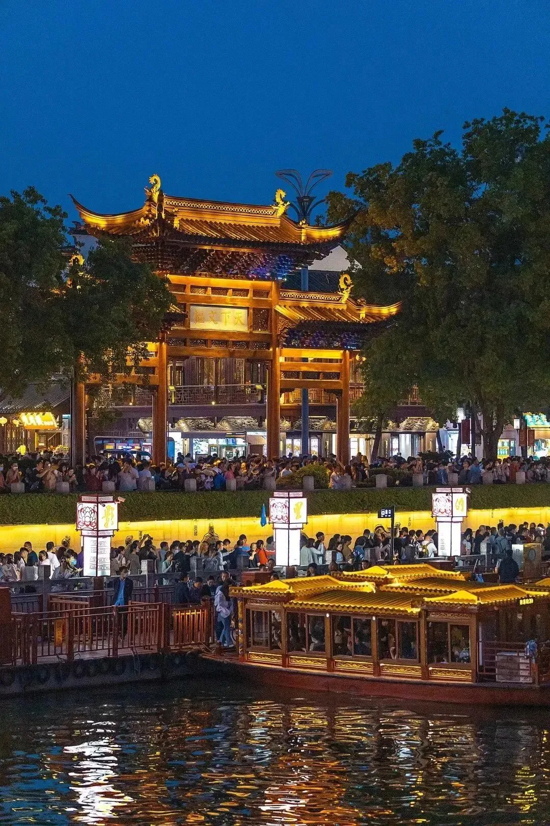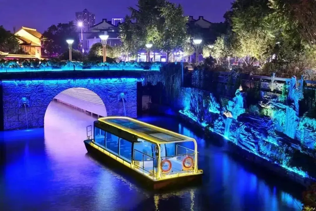 这是最经典的夜游秦淮河航线,自泮池码头出发,途经白鹭洲、七彩水街、东水关、复成桥……