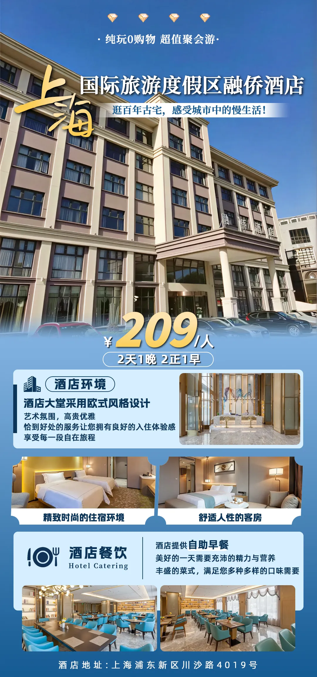 上海四钻·地铁口接送【国际旅游度假区融侨酒店】209元每人,2天1晚2正1早!享棋牌或KTV娱乐!逛百年古宅,感受城市中的慢生活!