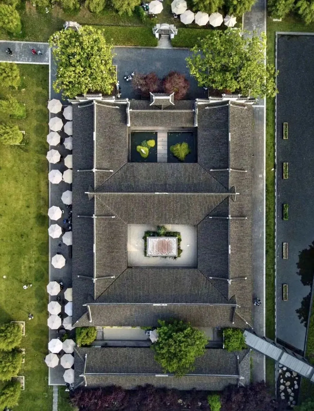 由三个个性和尺度均不同的庭院合围而成