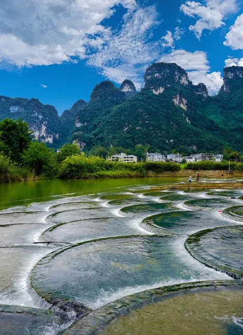 德天瀑布这个地方,所有人去了都说壮观,但壮观这个词其实说浅了,因为真正让人震撼的不是水量大不大、落差高不高,而是它就那么横在中越边境线上,一半在中国、一半在越南,水流从两个国家的土地上同时落下来,落到同一条归春河里,这种场景你在别的地方根本看不到。站在瀑布前面,你会突然意识到,国界这个东西在自然面前其实是很脆弱的,水不care你画的线,它该流还是流,该落还是落,但人偏偏就能在这种地方找到一种平衡,两边的村民照样种地、做生意、过日子,这股劲儿就很有意思。
