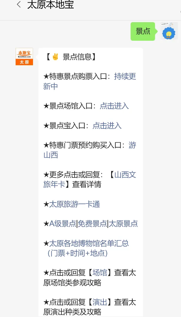 ➤在“太原本地宝”公众号聊天框回复: