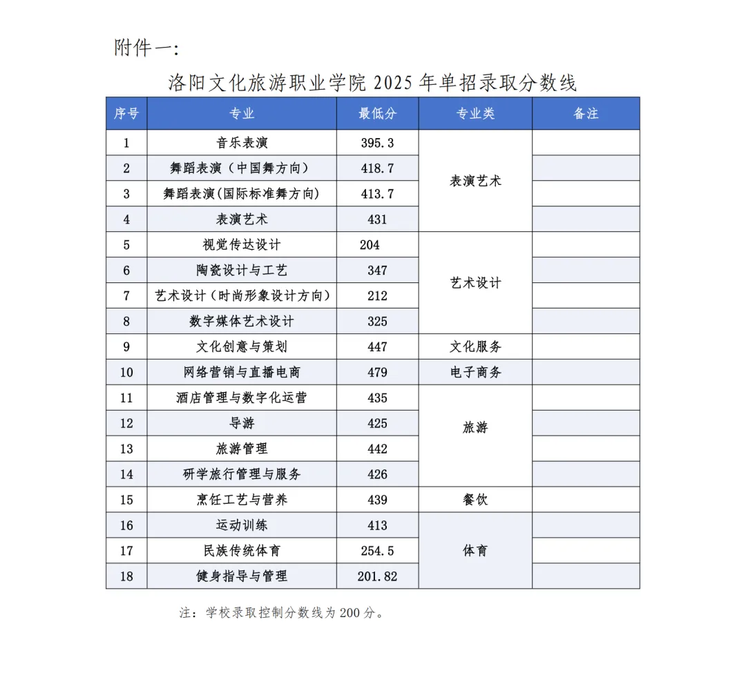 附件一:洛阳文化旅游职业学院2025年单招录取分数线