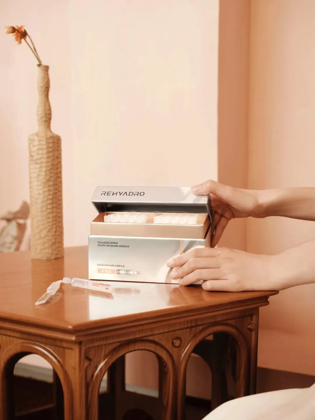 背靠华熙生物的润熙泉,用特有的4D玻尿酸促渗技术,把各种修护的胶原和褪红镇定成分运载到已经停转的皮肤里。