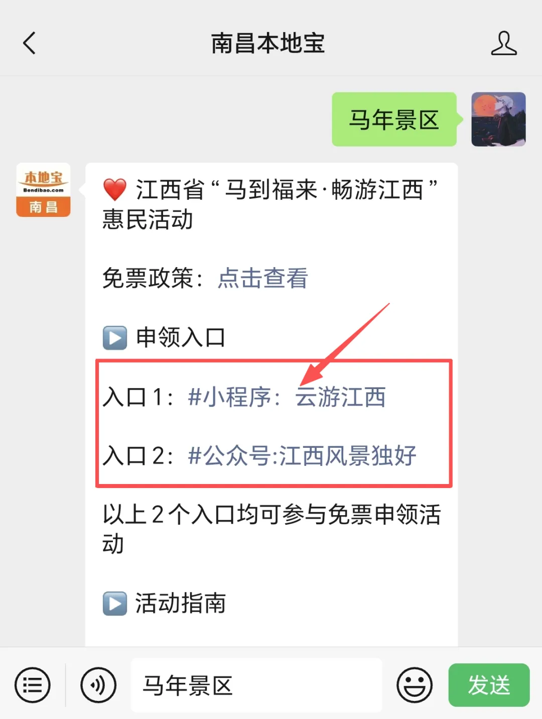 点击发消息,发送【马年景区】直接获取
