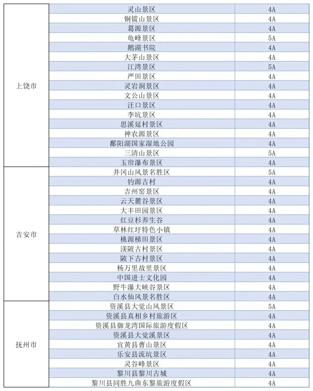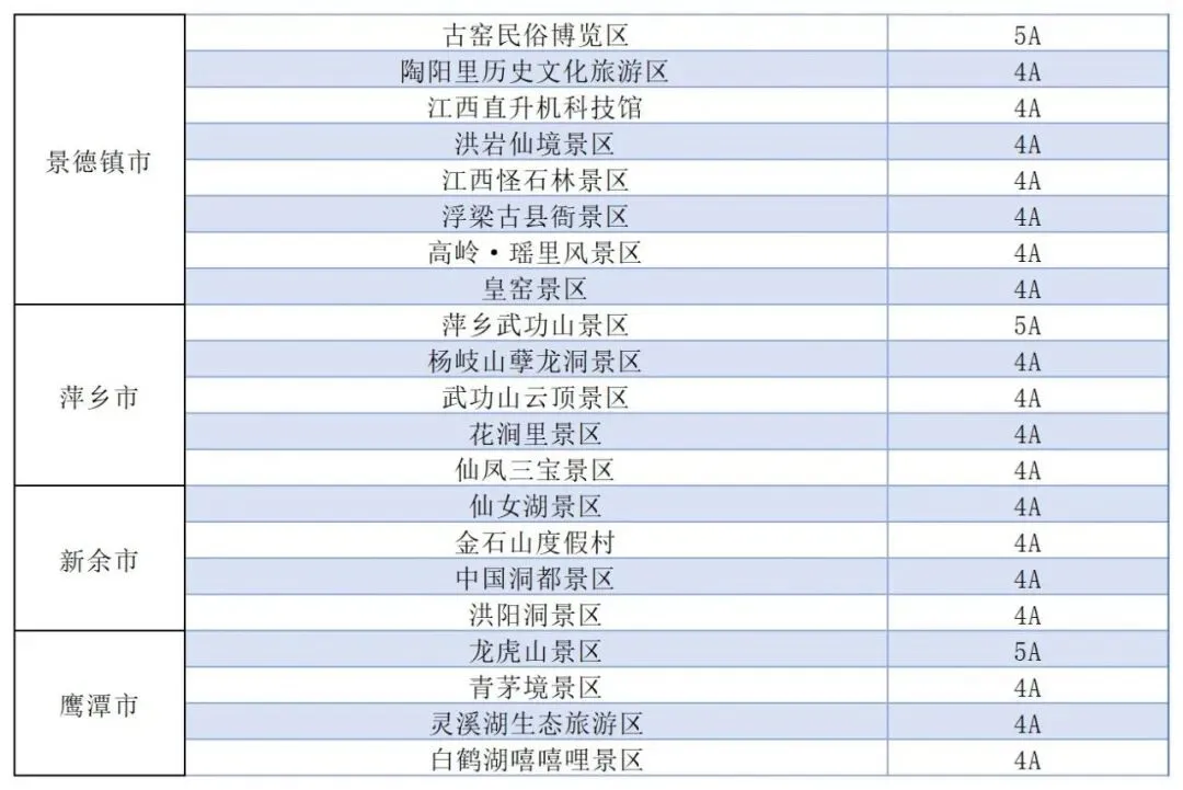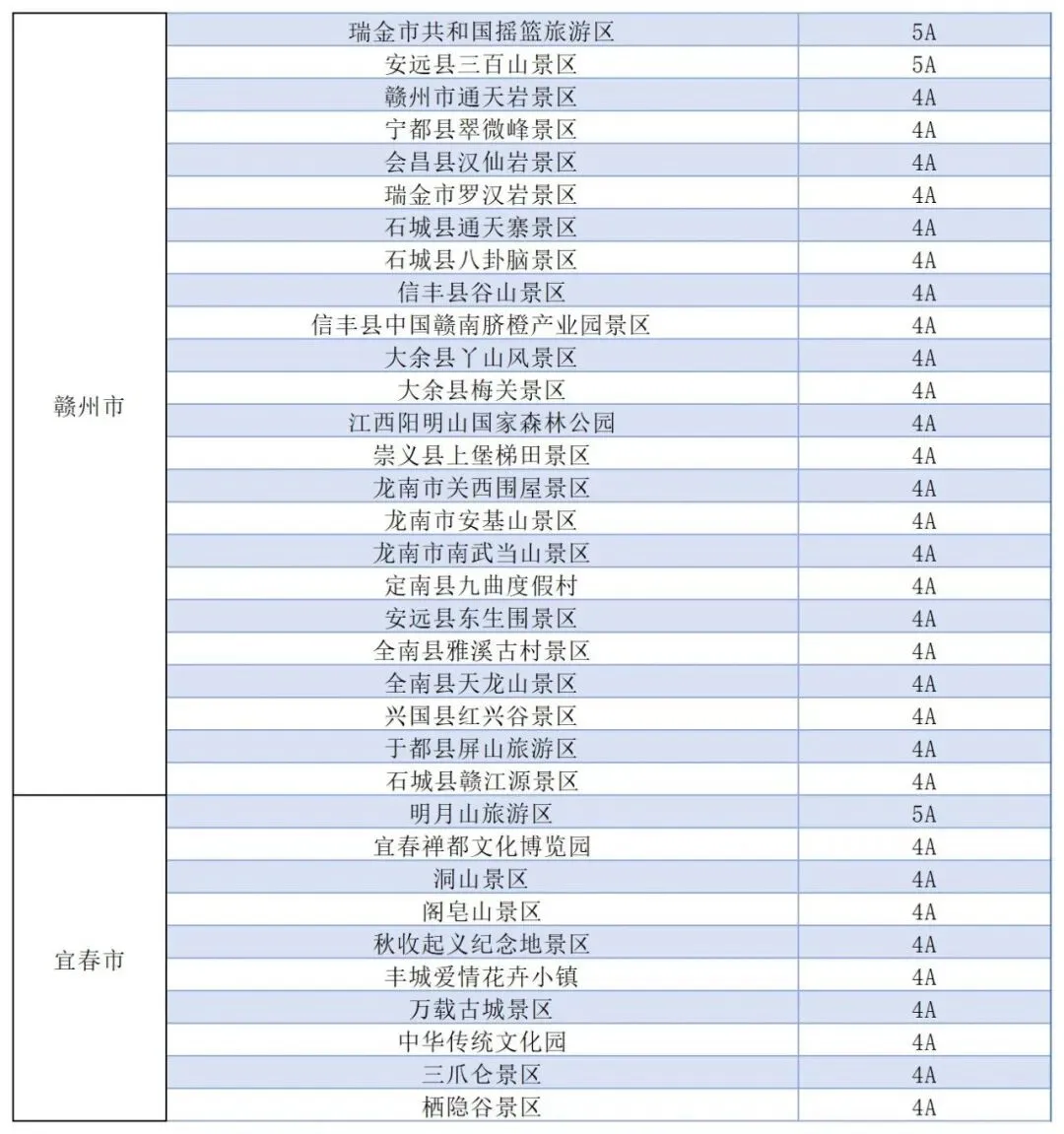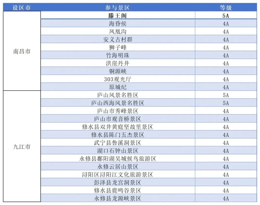 江西全省国有4A级以上景区(具体景区名单附后)。
