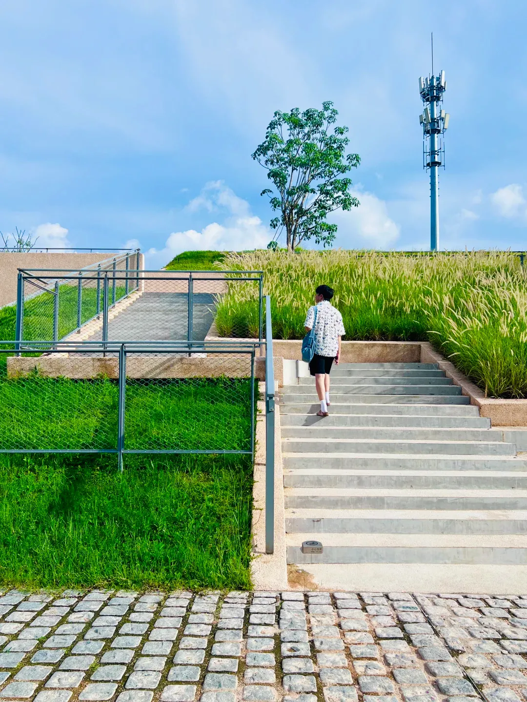 ✅白芒驿 几何美学的巧妙演绎 土黄色与绿色杂糅 狗尾巴草和蓝天白云遥相呼应 午后的光影穿梭于几何水刷石间 捕捉光之美 记得带上模特