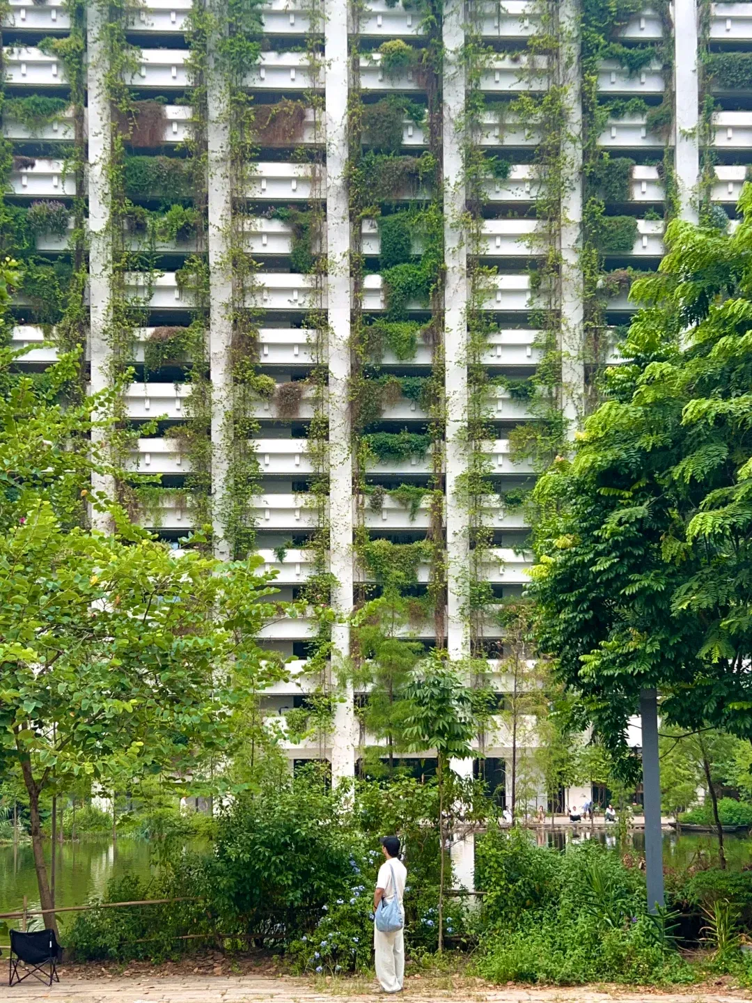 ✅梧桐村植物大楼 仿佛走进了城市绿洲 湖畔旁的白色大楼 绿植镶嵌其中 森系感拉满