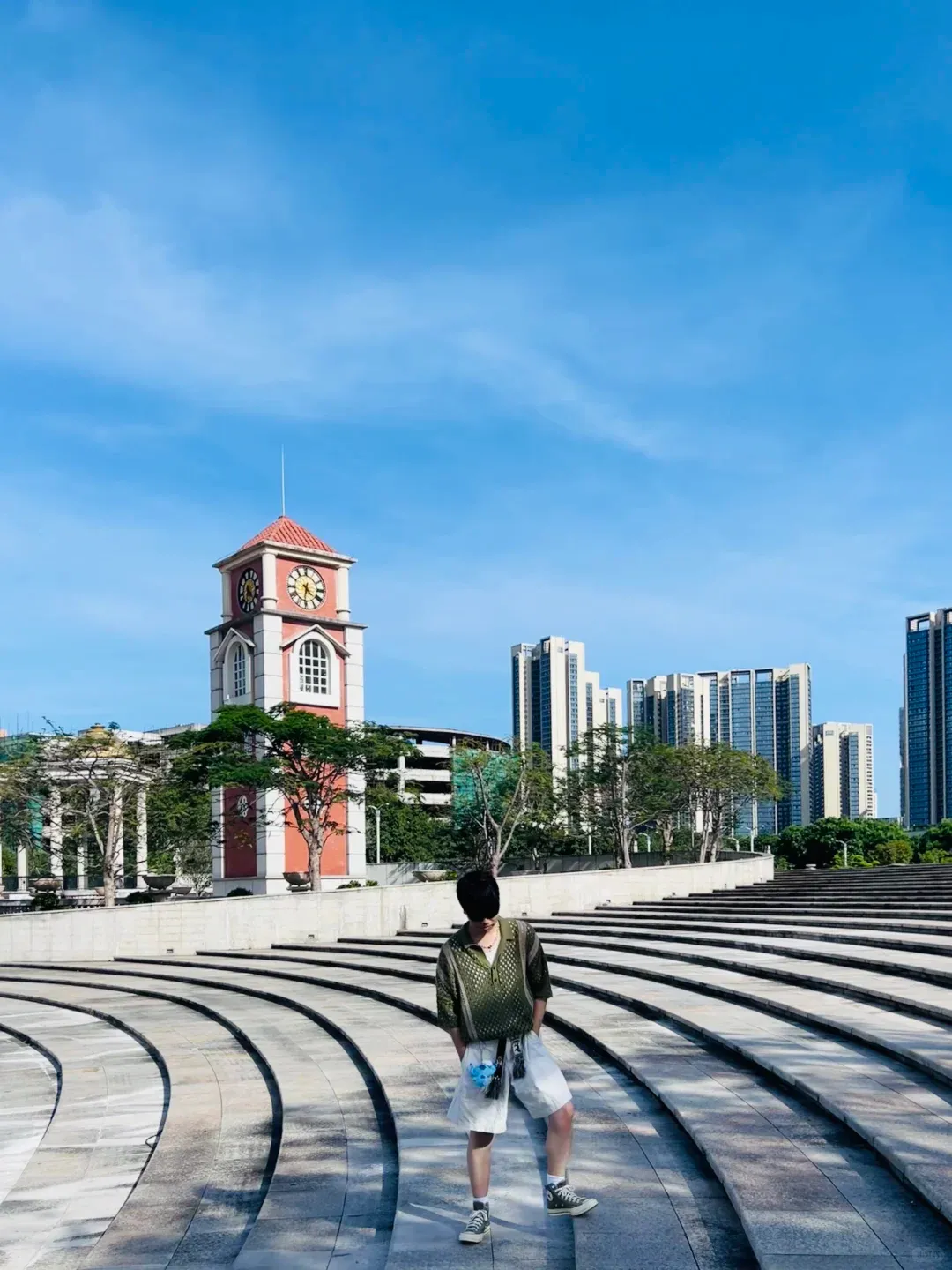 ✅新桥市民广场 一秒穿越欧洲 长长的廊道 意式钟楼 以及雕塑区 仿佛罗马假日一般 晴好的天气去拍很出片