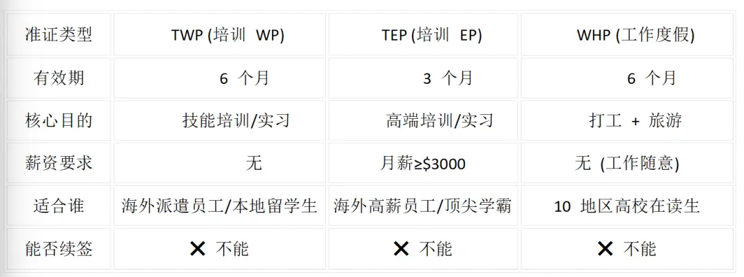 最后唠两句:这三种准证虽然“冷门”,但在特定场景下简直是神器。TWP 和 TEP 更像是公司或学校安排的“任务”,而 WHP 则是给年轻人的一份“礼物”。