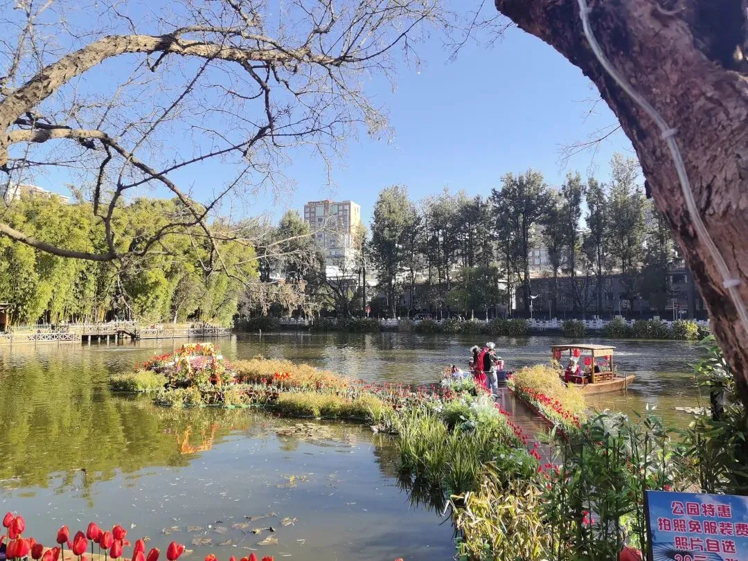 翠湖公园位于昆明城五华山西麓,占地22.1公顷,其中水体面积约15公顷,被誉为镶嵌在昆明城的"绿宝石";公园由水月轩、海心亭、九龙池、观鱼楼、莲华禅院、西南岛、竹林岛等景点组成,园内水光潋滟、杨柳垂青、鲜花常开、亭台楼阁、错落有致、景色怡人,游客在这里怀古赏月、观花戏鸥,是一个集百年历史文化和园林艺术为一体的游览胜地。毗邻翠湖公园的云南陆军讲武堂旧址,是中国近代史上著名的军事院校﹣﹣云南陆军讲武堂(1907-1935)的遗存,占地面积约30000平方米,现存有主体建筑、内操场、附属建筑等,是国内唯一原址原状、较完整保存下来的中国近代军事院校遗址。现已开辟为云南陆军讲武堂历史博物馆,免费向公众开放。