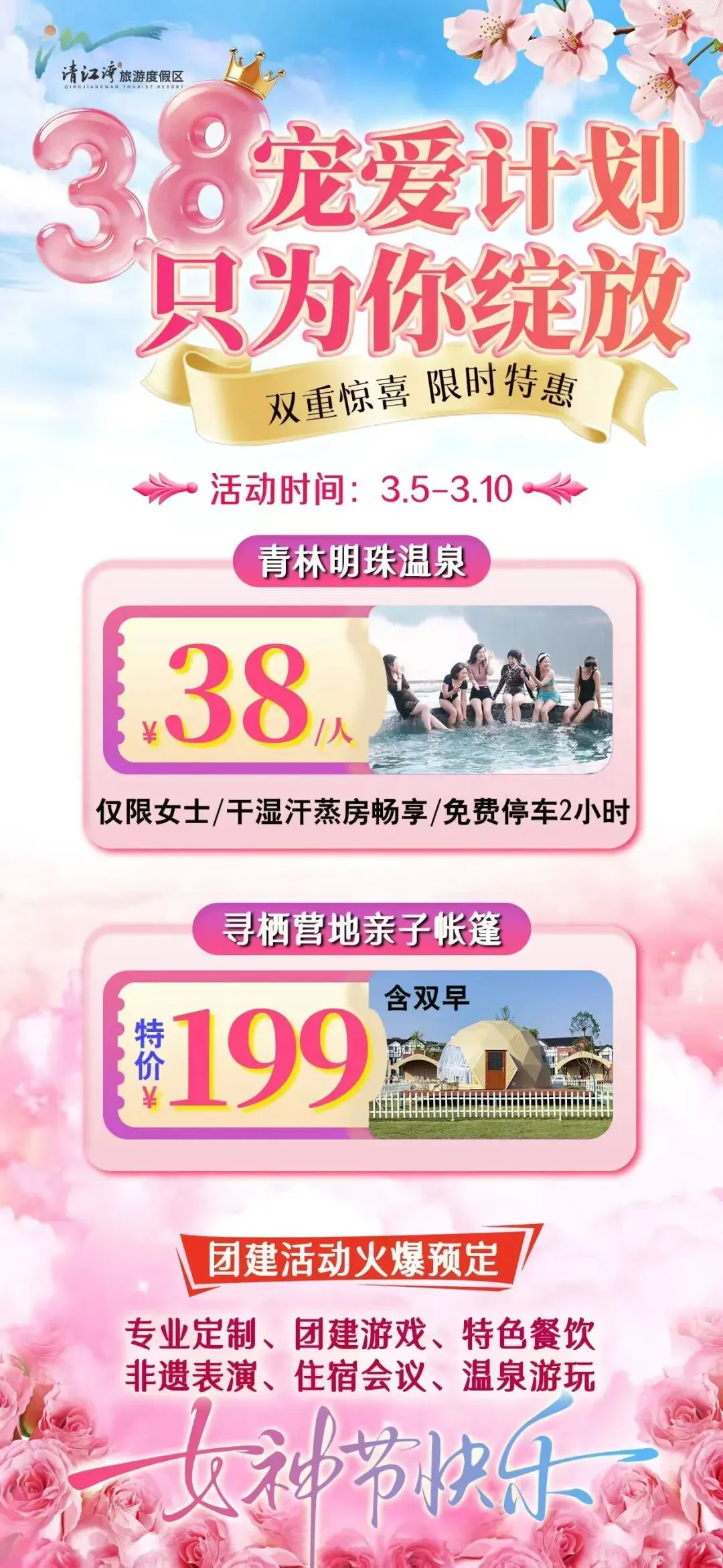 您现在的位置是:首页 > 国内旅游目的推荐 > 正文 国内旅游目的推荐 三八女神节,宜都这几个景区推特价门票,或免门票! admin2026年03月01日 22:34:52国内旅游目的推荐2 三八女神节,宜都这几个景区推特价门票,或免门票!需要发布招租信息,请联系石头锅三峡长颈鹿乐园1、目前抖音上推出了30元的门票秒杀价,大家可以去抖音直接下单!2、3月7日、8日两天,身穿旗袍女性可免费入园,生肖属马的女性凭身份证件免费入园3、团队购票更优惠,详情可咨询石头锅(电话和微信:17683706757)青林明珠温泉需要温泉优惠门票可咨询石头锅电话和微信:17683706757三峡千古情目前针对个人没有优惠活动但走团队可享受优惠可咨询石头锅电话和微信:17683706757青林乐园抖音上目前推出了如下活动大家可以直接下单宜都招聘 租房 找房子请扫描 下方二维码 转载请说明来源于"旅荐网",部分内容转载自网络,如有侵权请联系qlwl@foxmail.com删除 本文地址:https://www.15386.cn/post/129804.html 上一篇 扬州3月景区免费开放日时间表! 下一篇 河南,除了新郑,河南与黄帝有关的文物景点还有这些 相关文章 春节过后错峰旅游!这5座AAAAA景区人少景美性价比超高!不排队随便拍照,太爽了!! 特大喜讯,5A景区庐山三月免票!是时候去东林寺了!(攻略非常详细全年有用) 旅游回来,年后的第一次聚餐 别跑空!天津这个景区暂停运营三天 河南,除了新郑,河南与黄帝有关的文物景点还有这些 扬州3月景区免费开放日时间表! 桂林旅游学院商学院2026年高层次人才招聘公告 天津:把全国景区饭碗砸漏了,是这长达一个月的中国式过年 山东淄博:把全国景区饭碗砸漏了,是这长达一个月的中国式过年 欢迎全国各地的亲朋好友来富平旅游观光 发表评论 取消回复 评论列表 这篇文章还没有收到评论,赶紧来抢沙发吧~