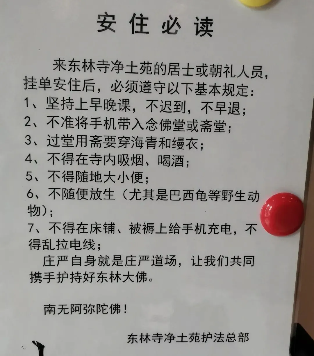 特别提醒!未成年人不满18岁不能在寺住宿,不可把孩子偷偷藏着带进宿舍,这种违法违纪行为万不可取,有认识的同修,因为这样的原因本人身份证被系统拉黑,也许永远都住不进了,不要以身试法。务必依教奉行!