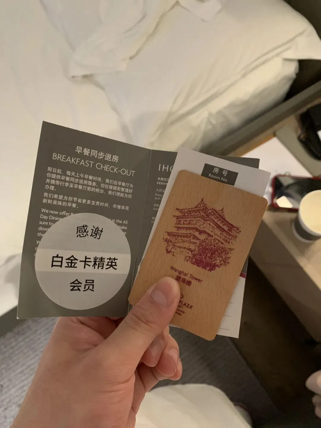 这家应该是有三套不同的房卡,都是泰州的标志。