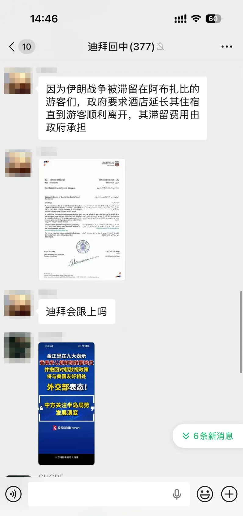 其中有一位温州游客正在迪拜旅游,突遇战事与空域关闭,所有旅行行程被迫取消,他只能在酒店等候消息,期待早日回国。