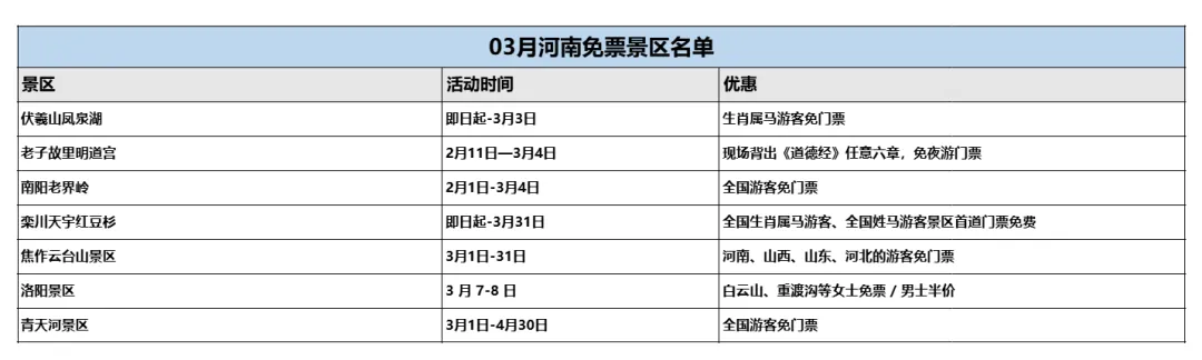 三月齐鲁大地梨花初绽,还有针对河南游客有专属免票,部分景区限时免费