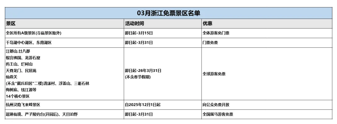 浙西山水、浙南古村在三月渐入佳境,衢州直接甩出全域核心景区免票王炸,杭州也有长期免票福利