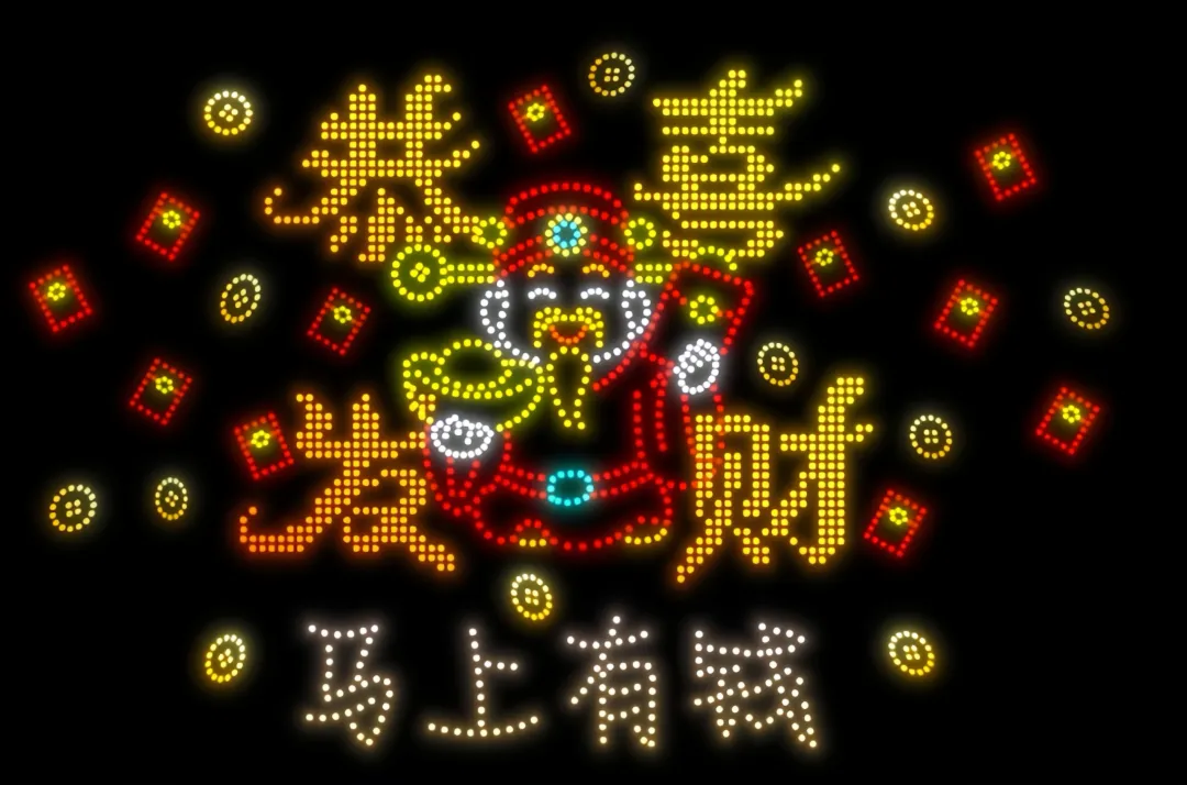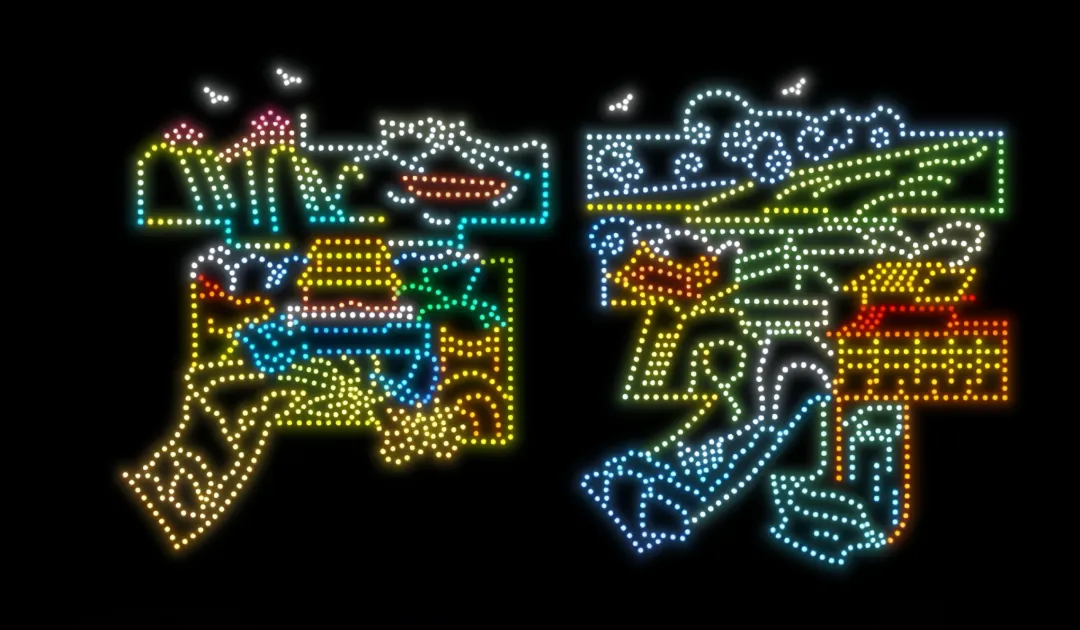 色彩斑斓的光点交织成独特的造型