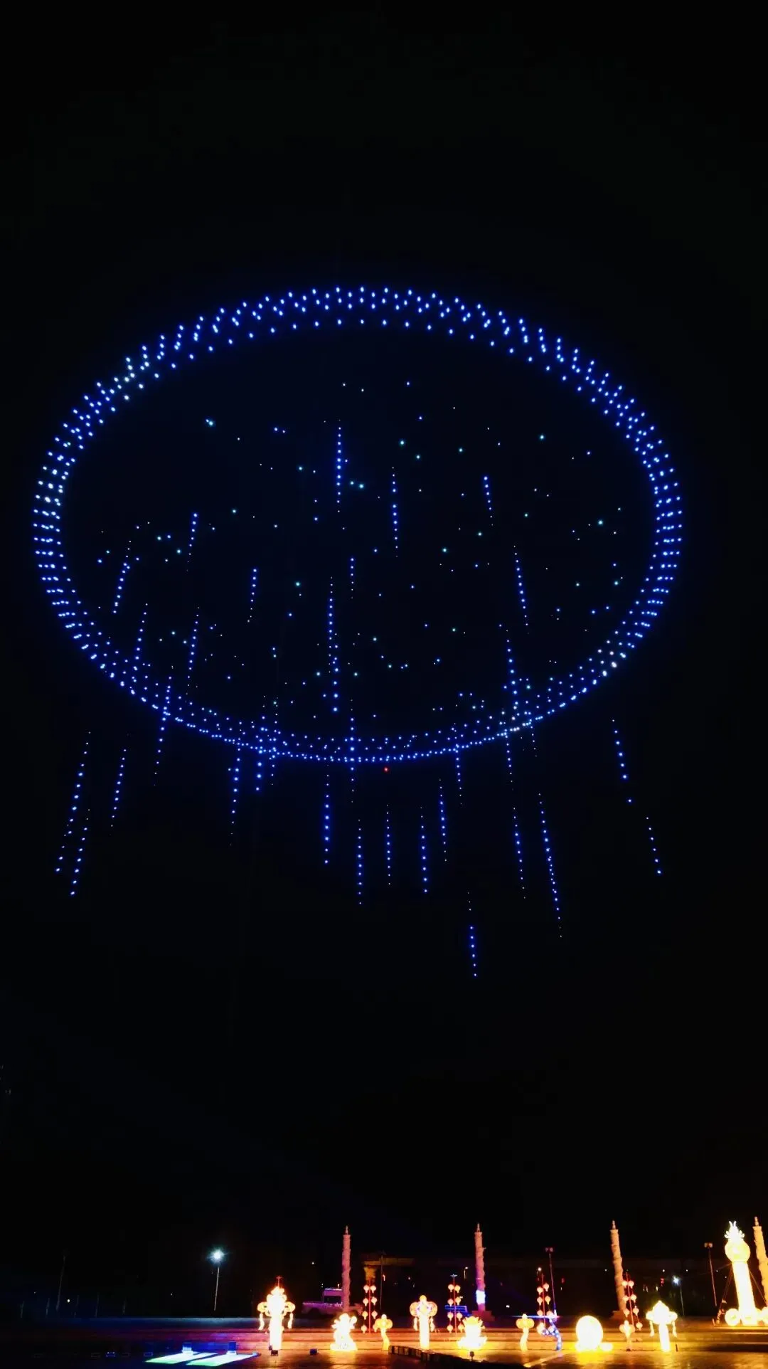 万众期待的无人机表演准时开始!